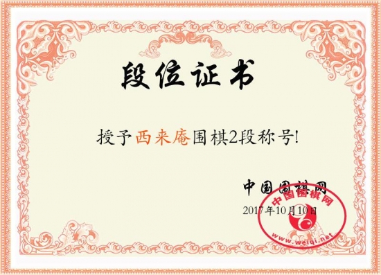 我进行了棋力自测并获得了围棋段位证书,你也来测测吧